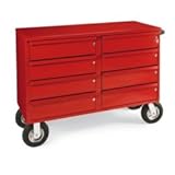 EUROKRAFT Eight-Drawer Premium Bench Trucks keep your supplies safe and organized. Close-tolerance components place these mobile cabinets among the strongest units on the market today. All-welded steel components. 201/2"Wx191/2"Dx5"H drawers hold up to 100 lbs. each and accept optional drawer dividers. Single-point, individual locking drawers. 16-gauge steel top. Caster rating determines overall truck capacity. Tough powder coat finish. Optional drawer dividers and butcher block top sold separately. NOTE: Shown with 8" full-pneumatic casters.